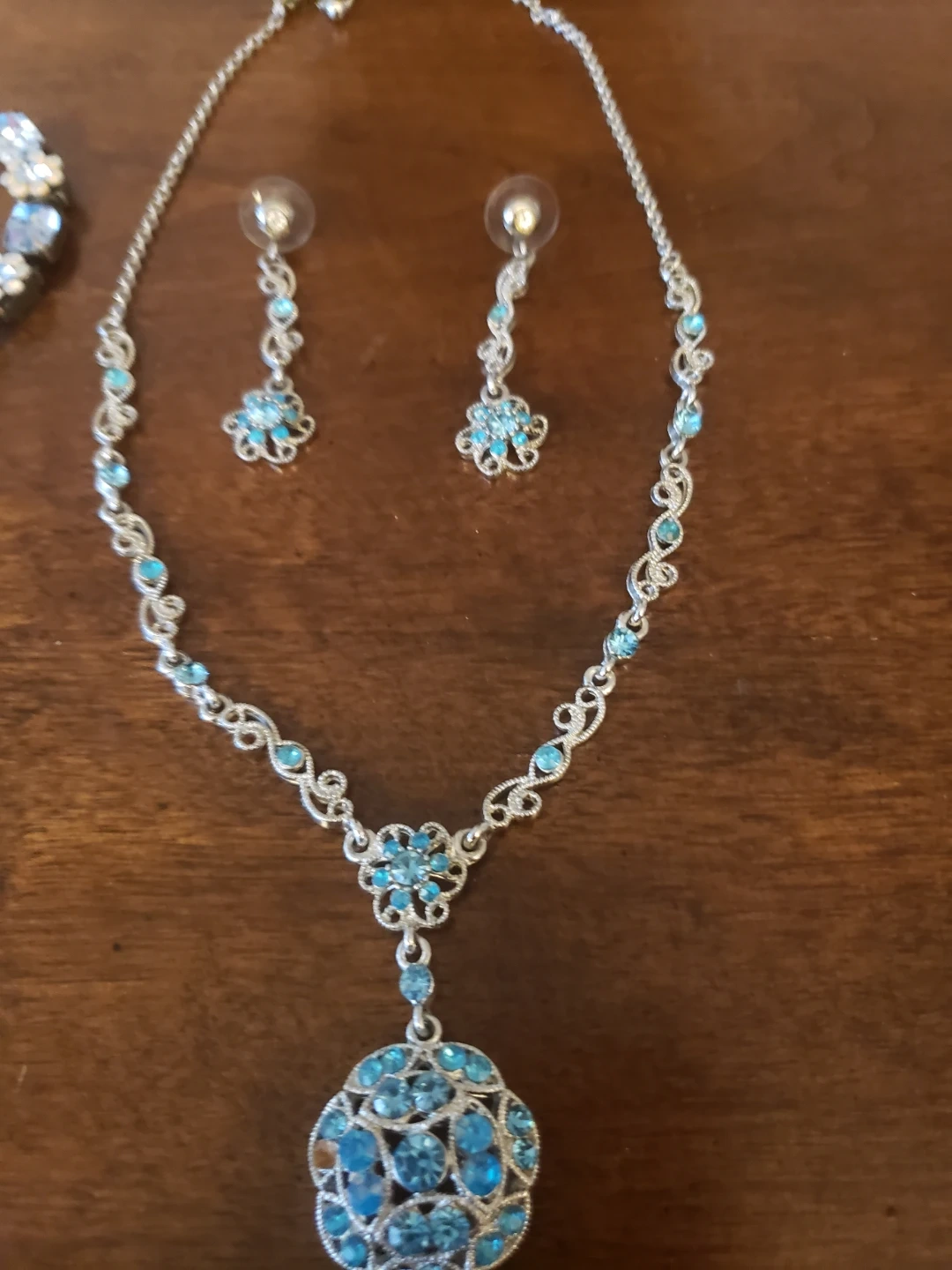 Blue Crystal Necklace, Bracelet, and Earring Set