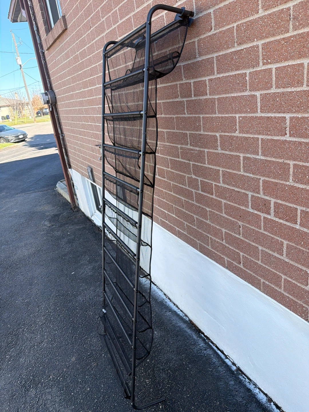 This 10-tier metal mesh shoe rack is perfect for organizing your footwear. It's a tall, narrow design that fits easily in closets or entryways. The open mesh construction allows for air circulation, keeping shoes fresh. It holds a good number of shoes!