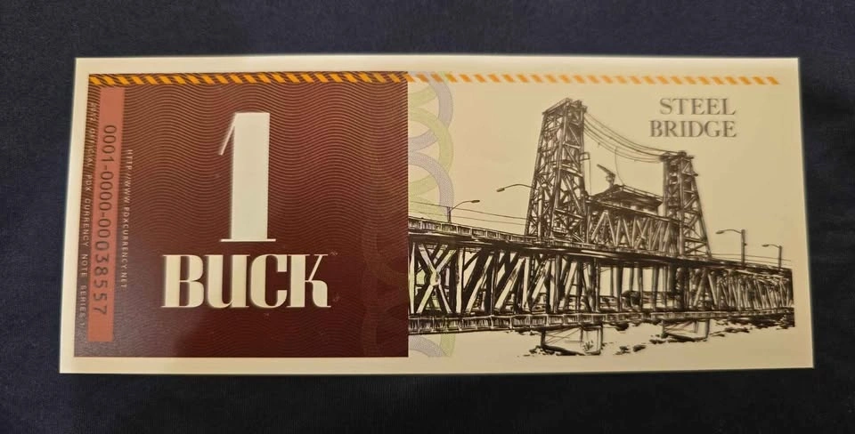 RARE Portland Bridgetown Bucks 1 Buck Note - Steel Bridge
