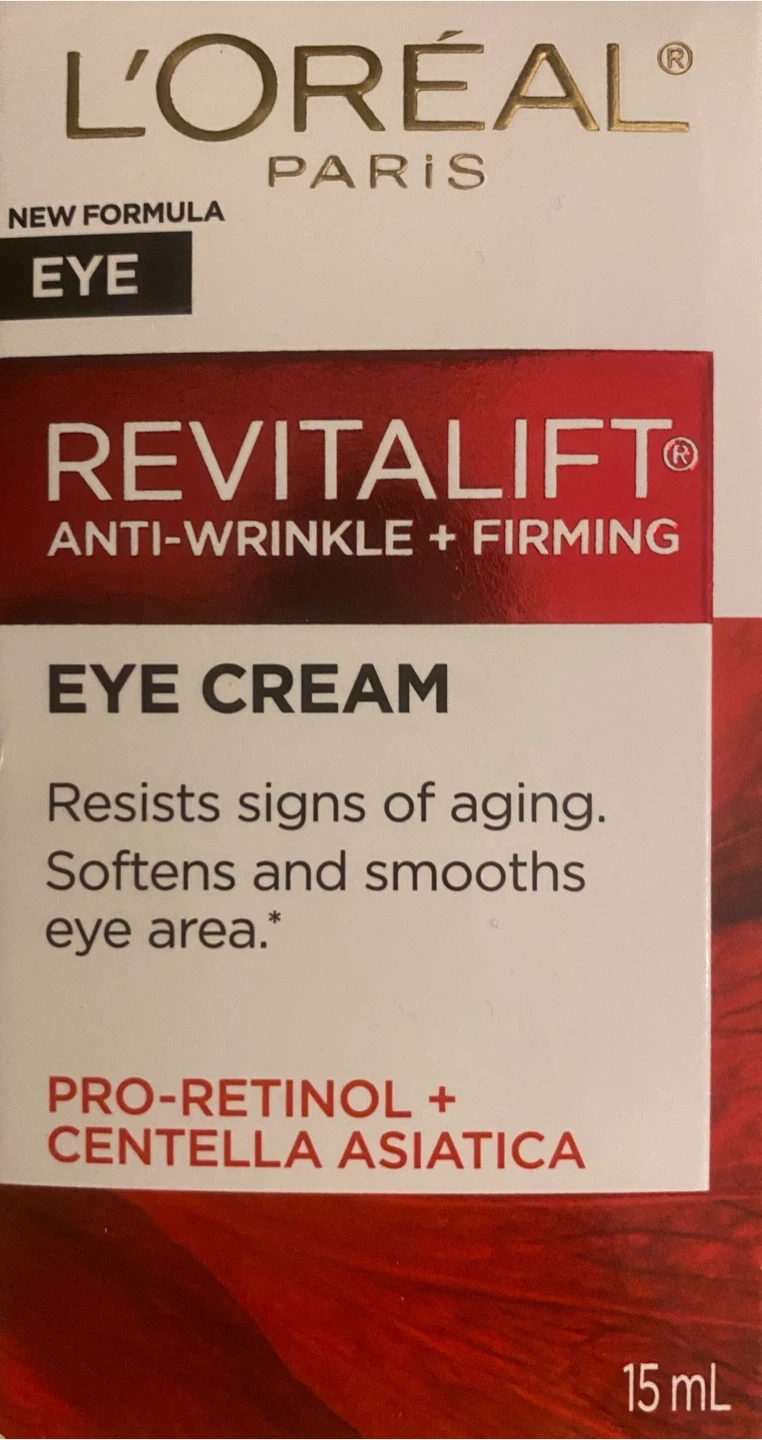 Selling L'Oréal Revitalift Anti-Wrinkle + Firming Eye Cream. It's a crème yeux that resists signs of aging, softening and smoothing the eye area. Contains Pro-Retinol + Centella Asiatica. Size is 15ml. I am selling this because my skin is too much sensitive.