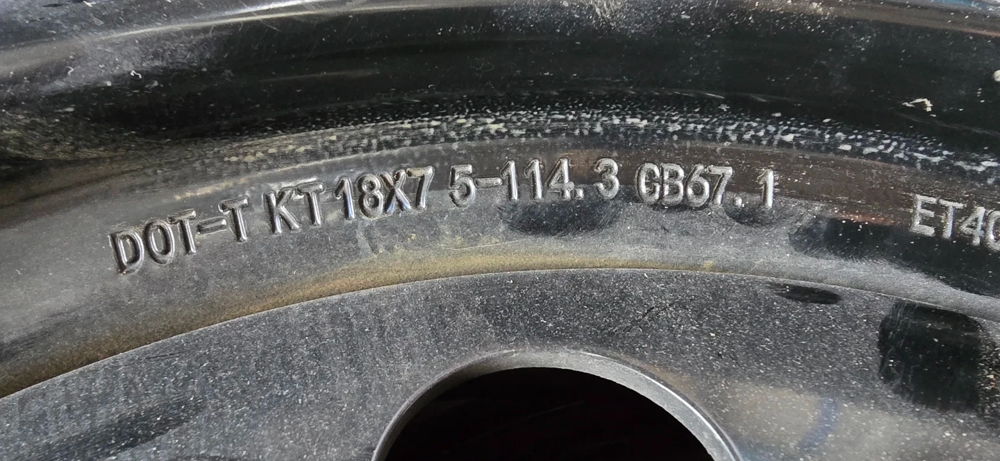 One 18x7 steel wheel rim. It's a black colour with a 5-114.3 bolt pattern and ET40 offset. This rim is compatible with a 67.1mm centre bore.