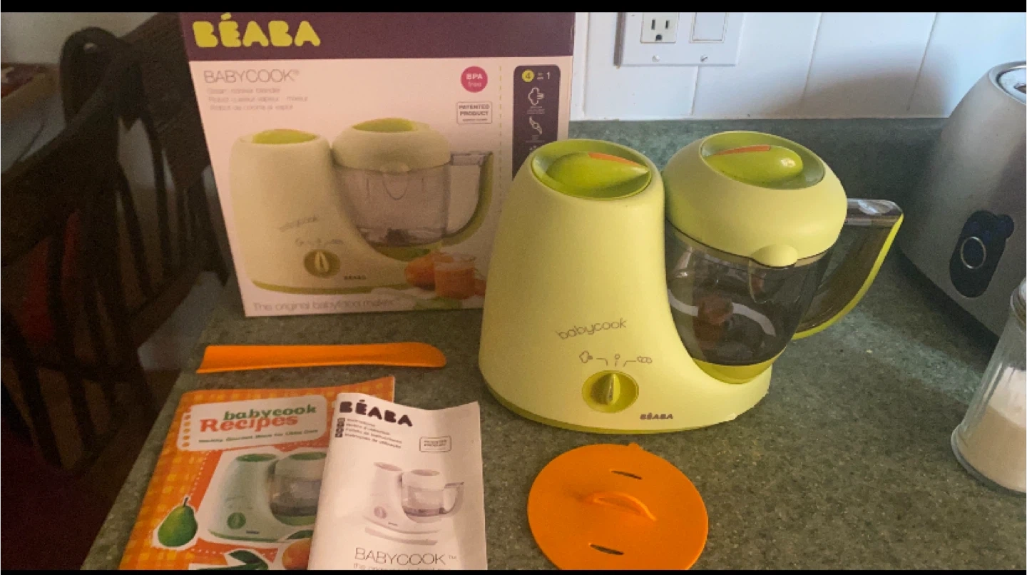 This is the original babyfood maker by BEABA. It steams, blends, defrosts, and reheats food. Includes the unit, steaming basket, lid, and spatula. It's BPA free and makes preparing homemade baby food simple!