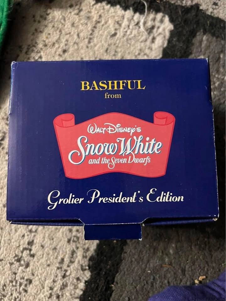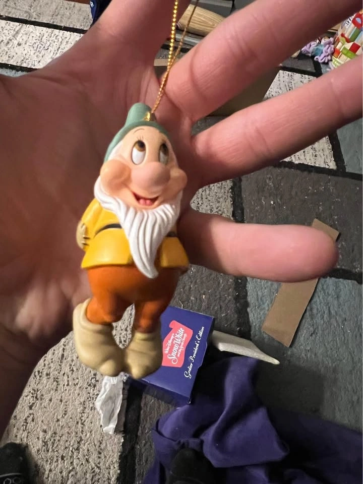 DCO Disney vintage Christmas tree ornament. Bashful dwarf from Snow White, NEW. Also available: Baloo, Cinderella, Winnie the Pooh, Grumpy dwarf, Nemo, Snow White, Minnie Mouse, Mickey Mouse, Oliver, Pluto, Merlin, Thumper, Goofy on skis, Alice in Wonderland, porcelain Baloo, and porcelain Bambi (dated 2001). $10 each or 3 for $25.
