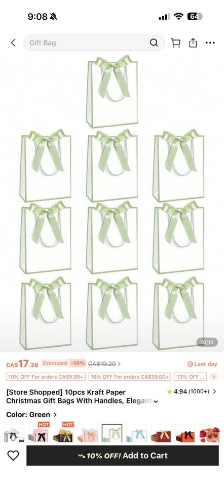 Buy & Sell10 Gift Bags10 Gift Bags$1010 green and white gift bags, unopened. I ordered too many for my event. Originally purchased for $17.28, selling for $15 OBO.WHERE TO MEETCheck LocationView MapSELLERKendraUpper Jarvis100 reviews0 chats·0 favorites·9 viewsSEND CHAT TO SELLERHi Kendra! I’m interested in your listing.Hi Kendra! I’m interested in your listing.Get the Karrot app to chatSign In to chat
