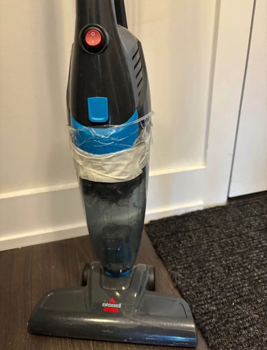 Bissell stick vacuum cleaner for easy floor cleaning. Corded electric power. Lightweight and compact design. Works perfectly fine except the release clip to hold the vacuum is broken so I taped it but functions properly.