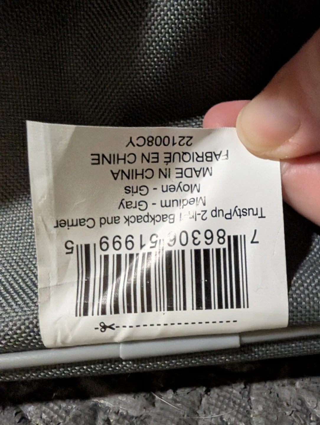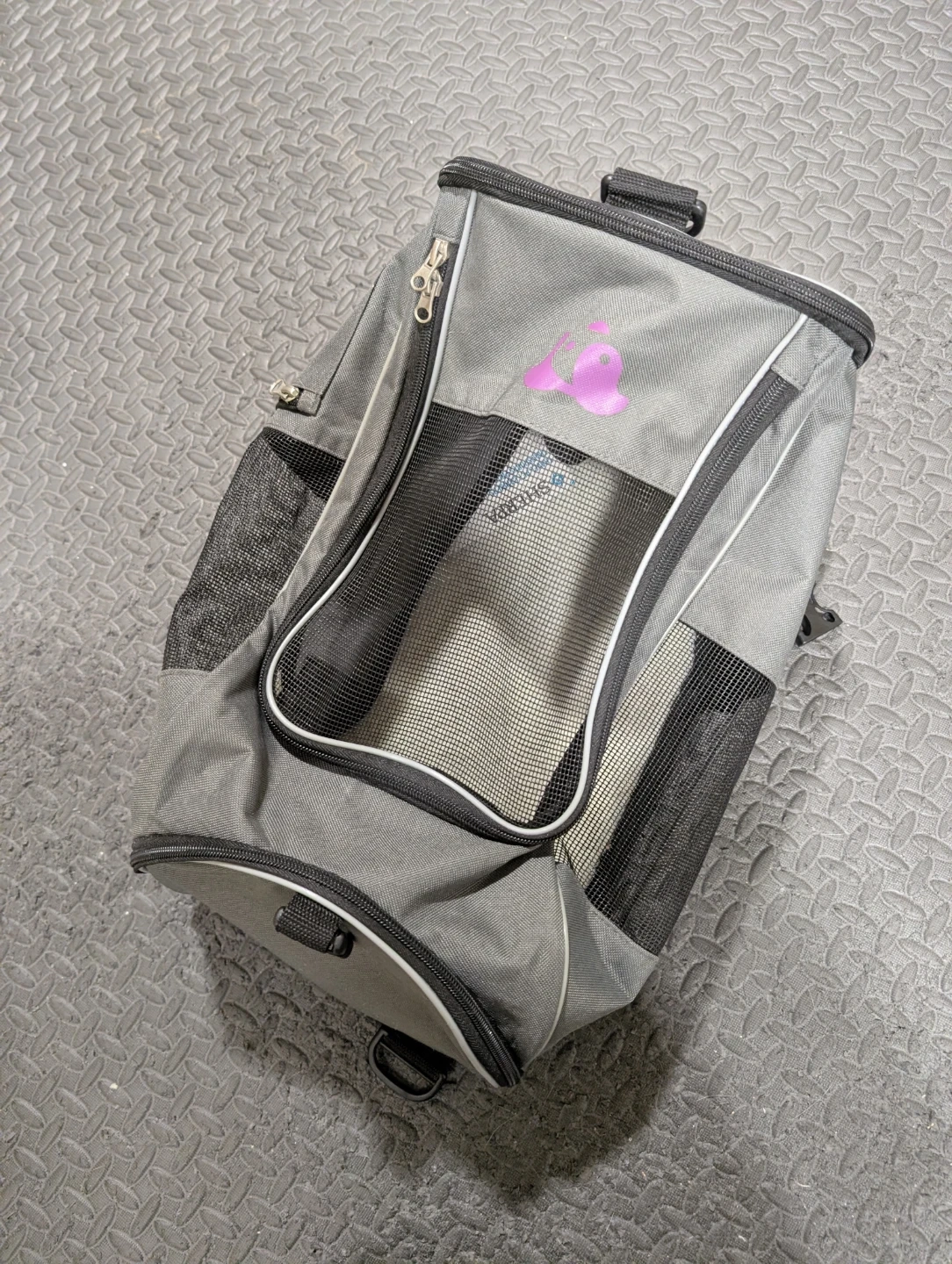 For small pets. Never used- brand new! Comes with arms, can turn into backpack.