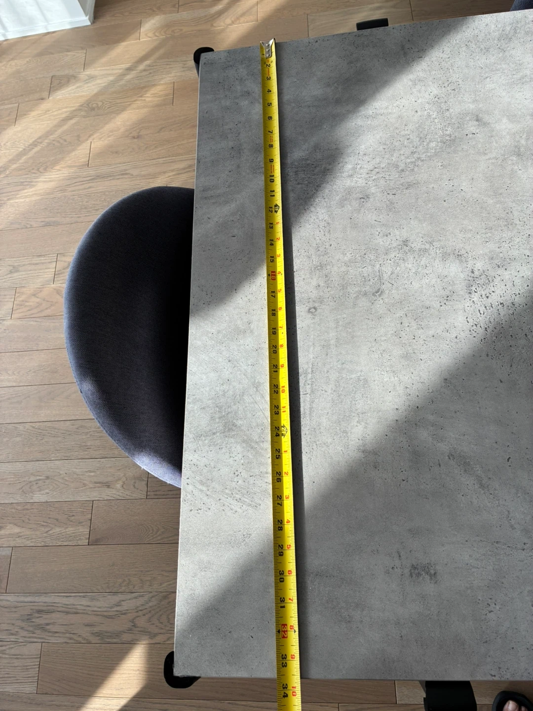 Table dimensions: