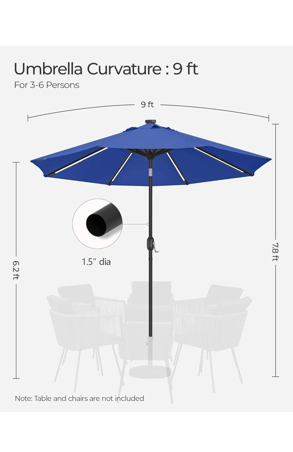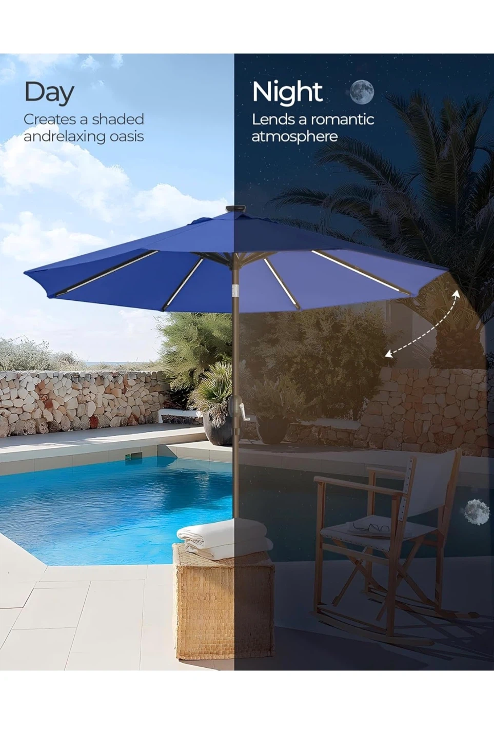 SANGMUCEN 9ft Patio Umbrella with LED Lights - Navy Blue