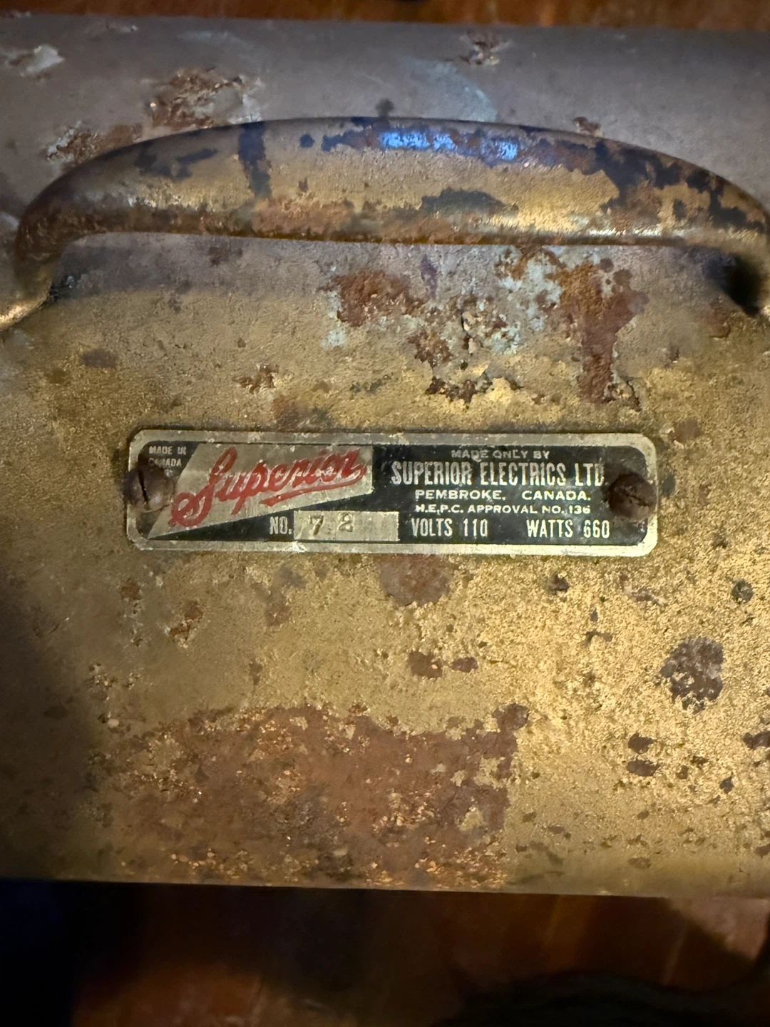 Made by Superior Electric Ltd, Pembroke, Ontario. Made in the 1920’s to 30’s