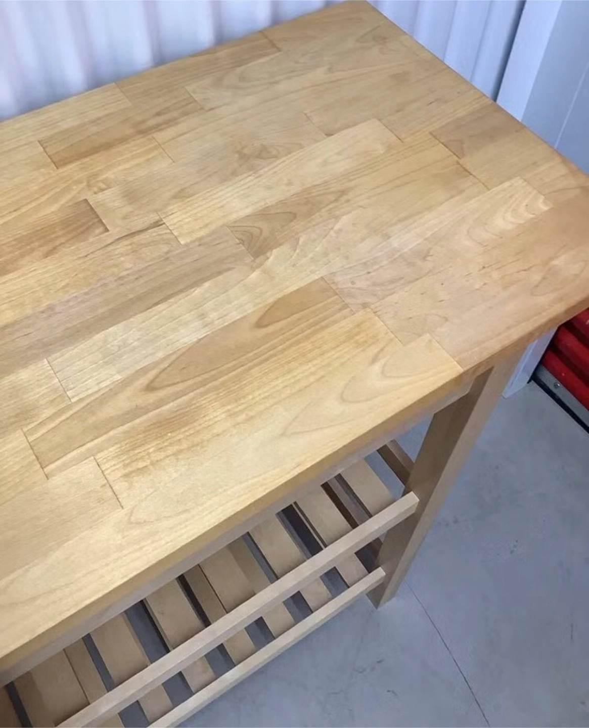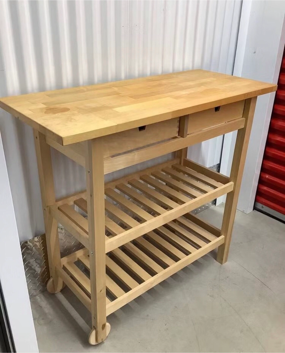 Selling a handy IKEA kitchen cart! It's in great shape and ready to roll into your kitchen. Features include a solid wood top, two drawers for storage, and two shelves below for extra space. Perfect for adding some extra prep area or storage to your kitchen!