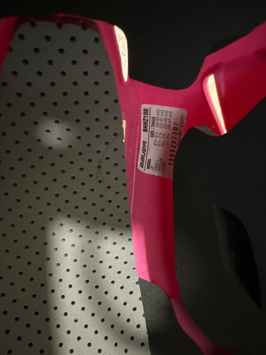 This is a pink Bauer hockey helmet. It's a youth medium size. It comes with a silver cage.