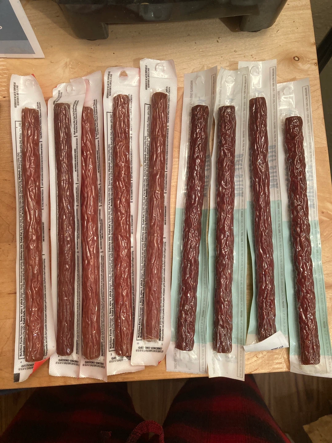 They each contain 10g of protein per serving and are zero sugar. Each stick is 1.15 oz (32g) and comes in a collagen casing.