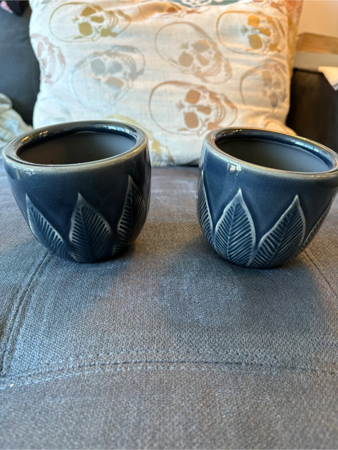 2 small sized plant pots about 4” in diameter. Beautiful blue leaf like designs. Like new condition- unused! $10 for both or $5 each. Pickup near Sherbourne and Adelaide St East or sometimes at some TTC stations.