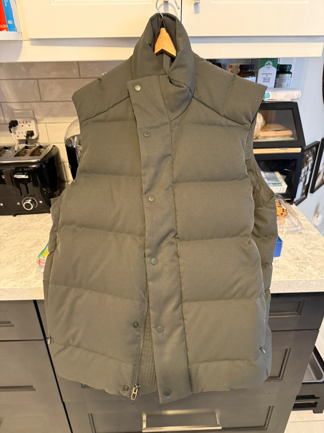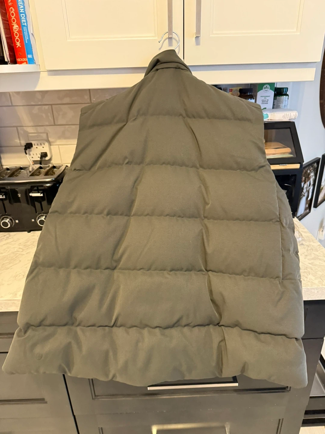 Snag this Lululemon Wunder Puff Vest! It's a men's vest in a nice olive green color. It's perfect for layering during those in-between seasons. Great for adding a bit of warmth without the bulk of a full jacket