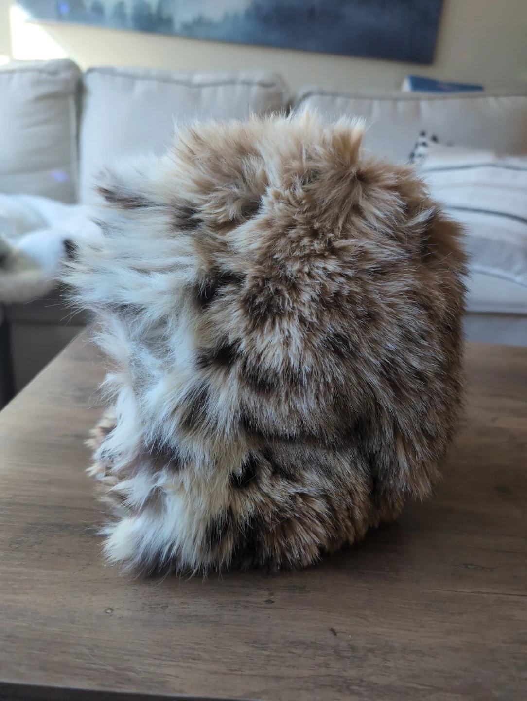 This vintage trapper hat is super warm and cozy. It's real fur exterior has a stylish look. The ear flaps can be tied up or worn down for extra protection from the cold.