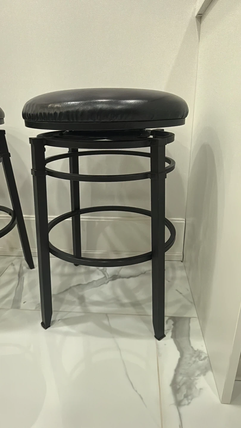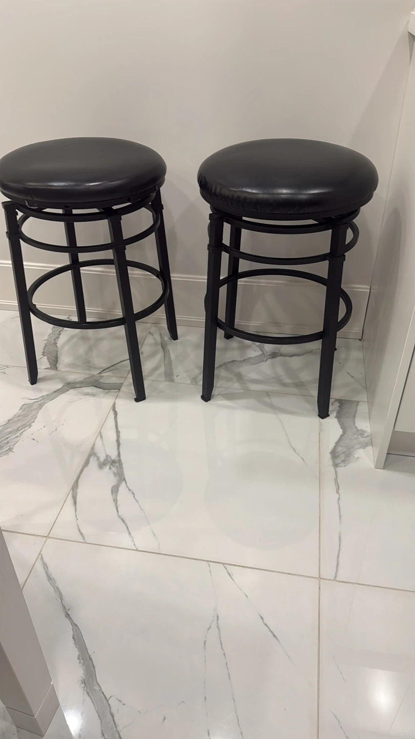 Selling 2 black bar stools with cushioned seats and 360° swivel. Very sturdy and comfortable. Perfect for kitchen island or bar area.