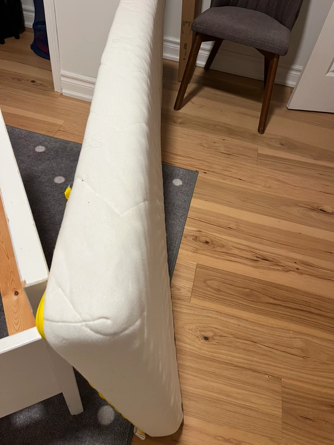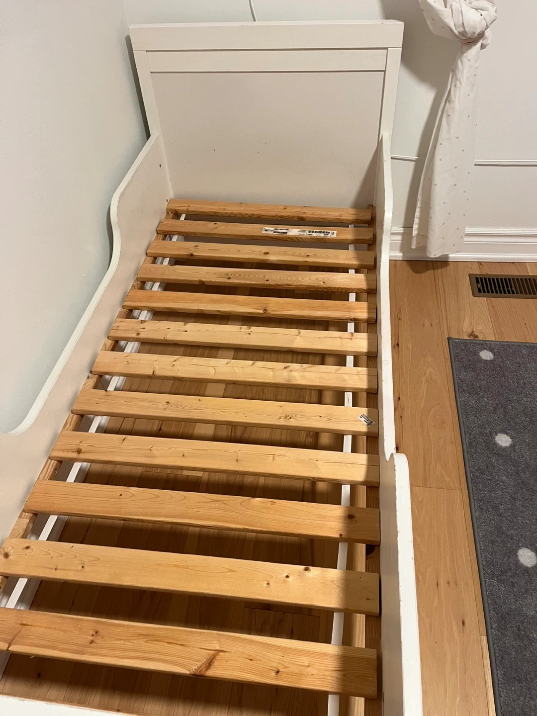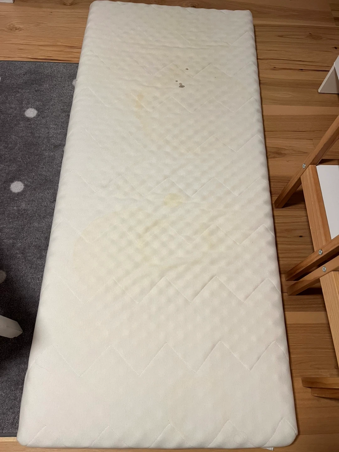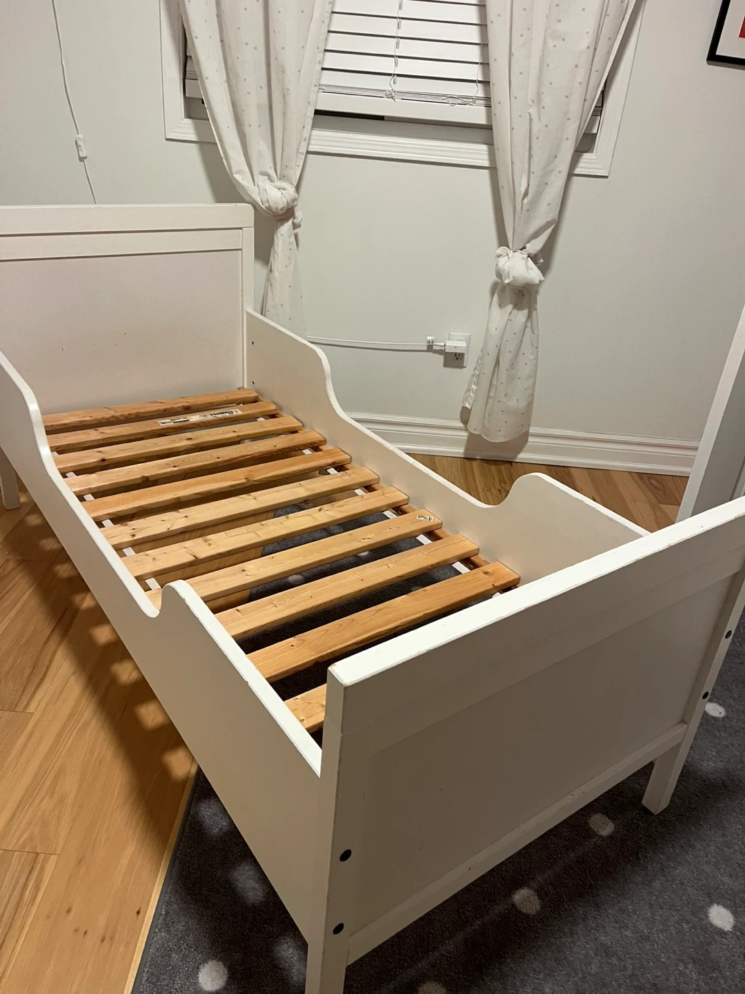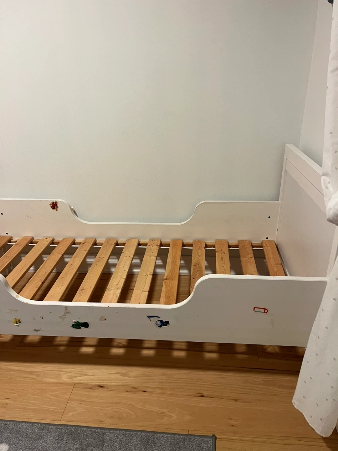 Selling an IKEA Sundvik Bed with mattress. It's in good condition and includes a mattress. The mattress has some stains but the cover is removable and washable.