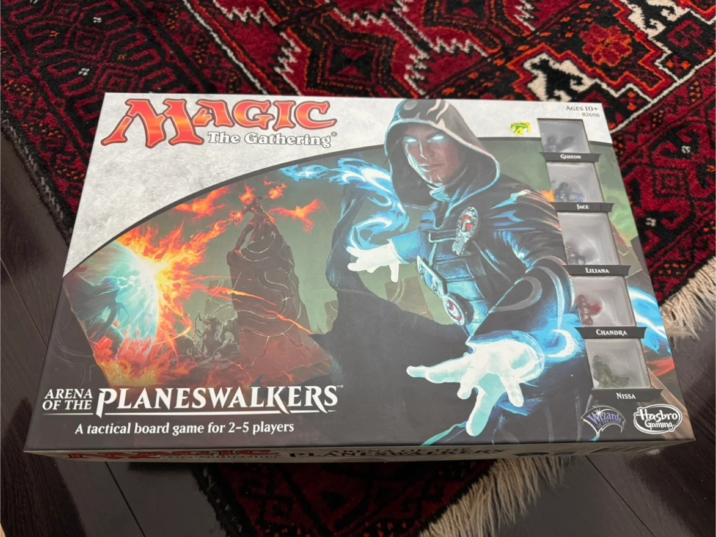 This is Magic: The Gathering Arena of the Planeswalkers tactical board game. It's designed for 2-5 players and ages 10+. Includes Chandra, Liliana, Jace, and Gideon figures.