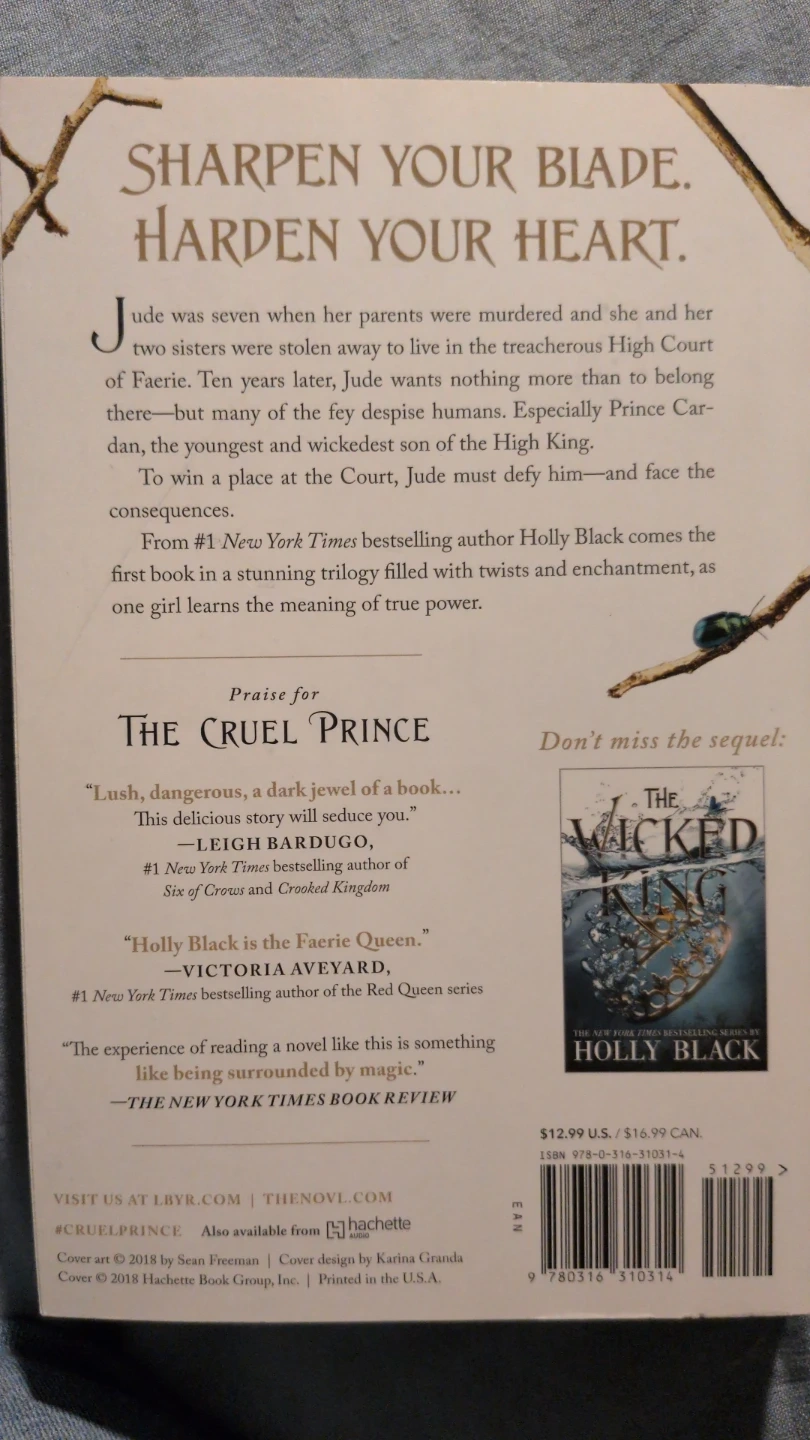 Two novels from the New York Times bestselling series by Holly Black. The Cruel Prince is the first book, followed by The Wicked King. Both feature the author's signature fantasy storytelling. These are paperback editions and perfect for a young adult read.