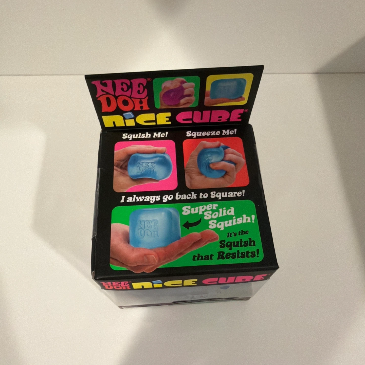 This Nee Doh Nice Cube is a super solid squish toy. It's the squish that resists! Recommended for ages 3 and up.