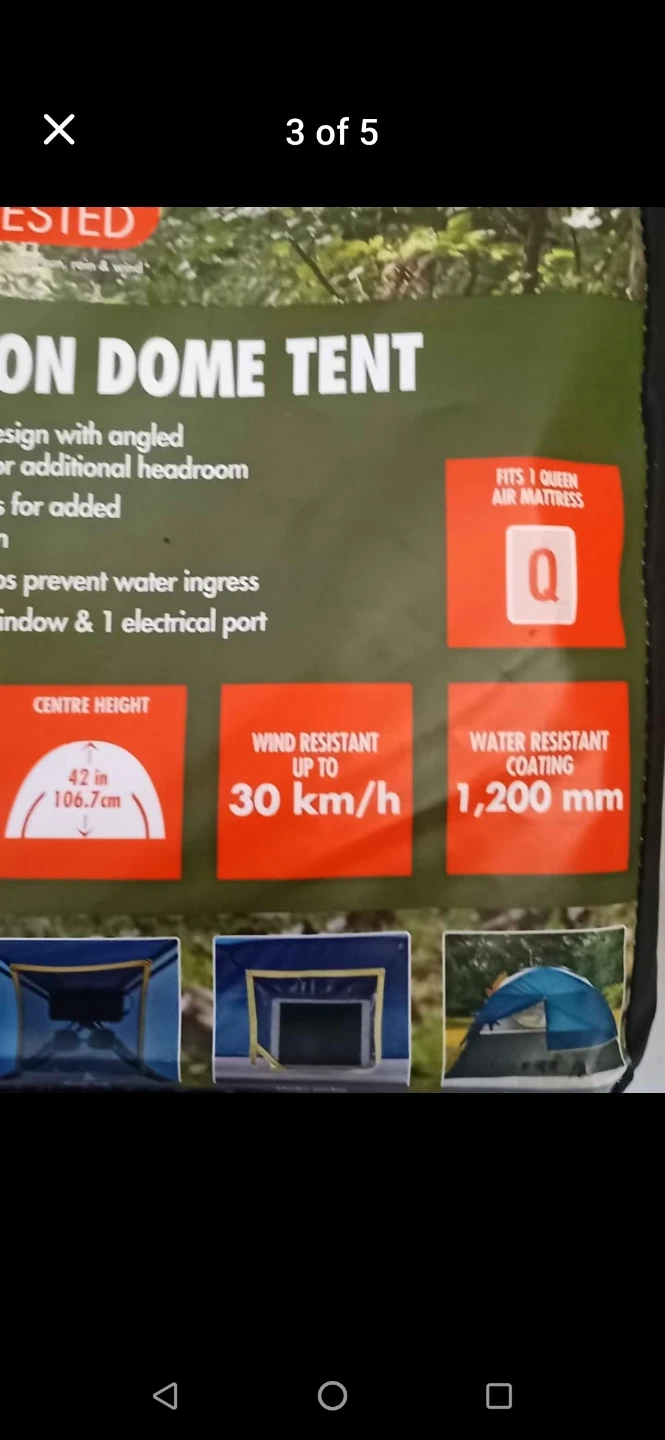 This 3-person dome tent features enlarged dome design with angled fiberglass poles for additional headroom. It has seam-taped edges for added weather protection and a tub-style floor to help prevent water ingress. The tent includes 1 mesh window and 1 electrical port.