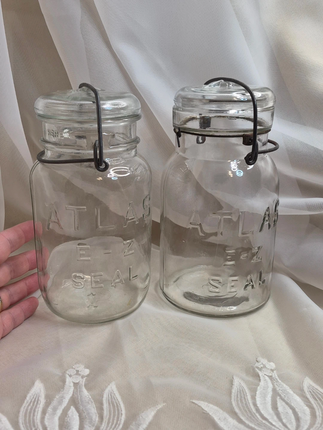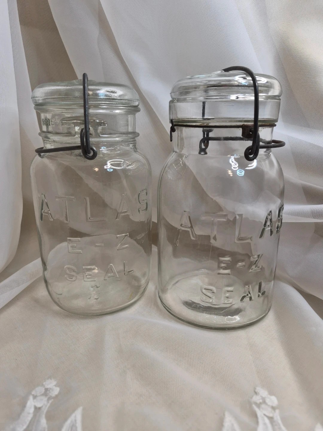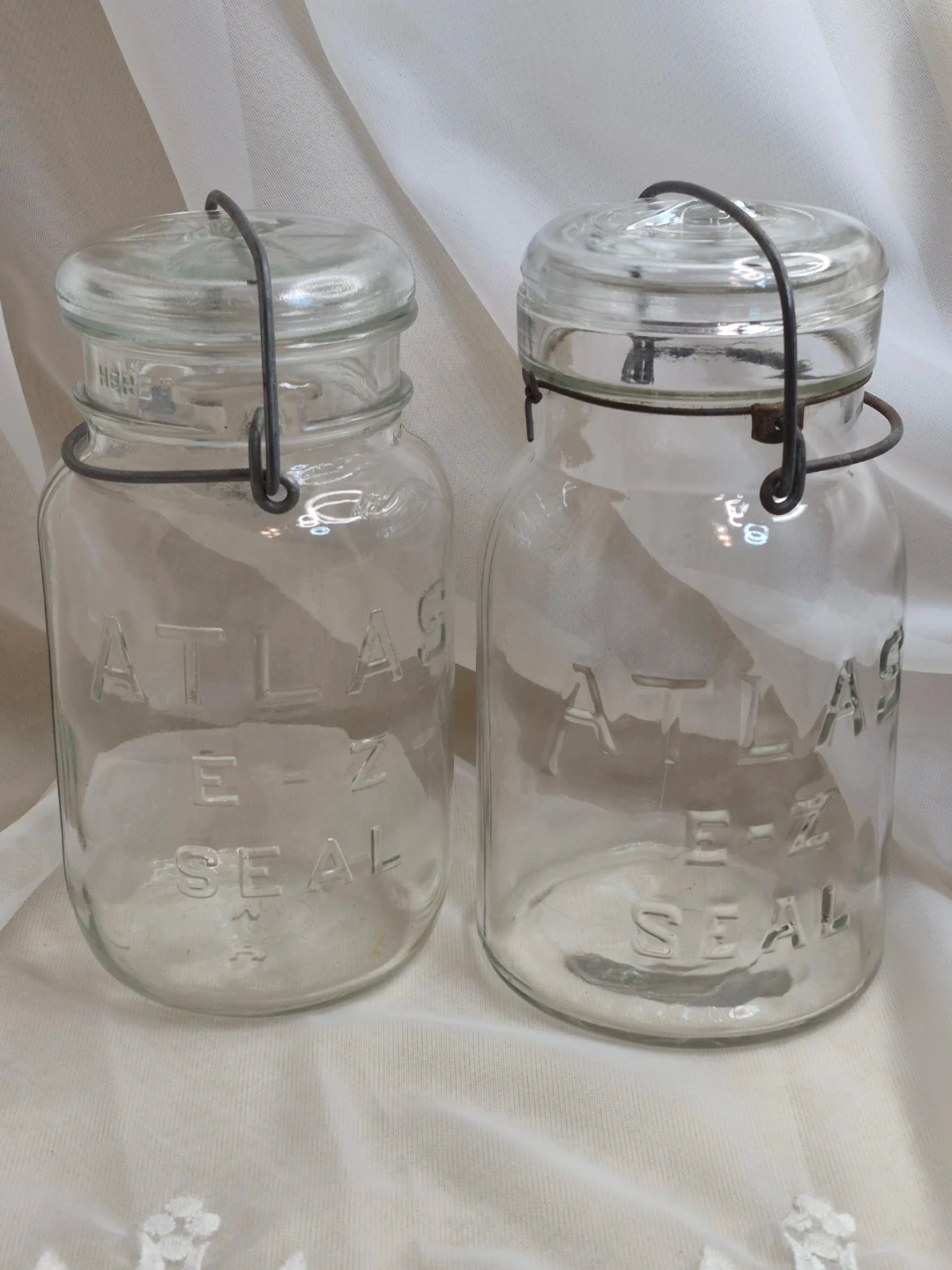 Pair of Vintage Clear Atlas E-Z Seal Wire Bail Quart