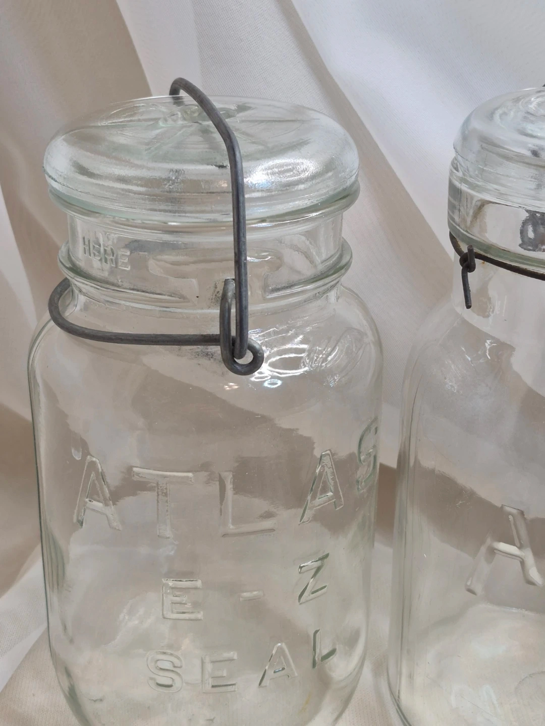 Pair of Vintage Clear Atlas E-Z Seal Wire Bail Quart Canning Jar w/Lids 1930’s - 1 Lt / 34 oz - Great Vintage Condition Selling both together Please See all pictures