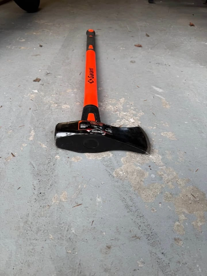 Selling a Garant 6 lb Splitting Maul in excellent condition. Purchased less than a year ago and only used a handful of times. Head: 6 lb forged and hardened steel—holds an edge well and has a wide flare for efficient splitting. Handle: 34-inch high-visibility orange fiberglass. Much more durable than wood and very easy to spot in the brush or woodpile. Grip: Non-slip thermoplastic rubber (TPR) with an ergonomic flared end. Safety: Features integrated overstrike protection to prevent handle damage if you miss a swing. Perfect for splitting firewood or logs. Only selling because I am downsizing.