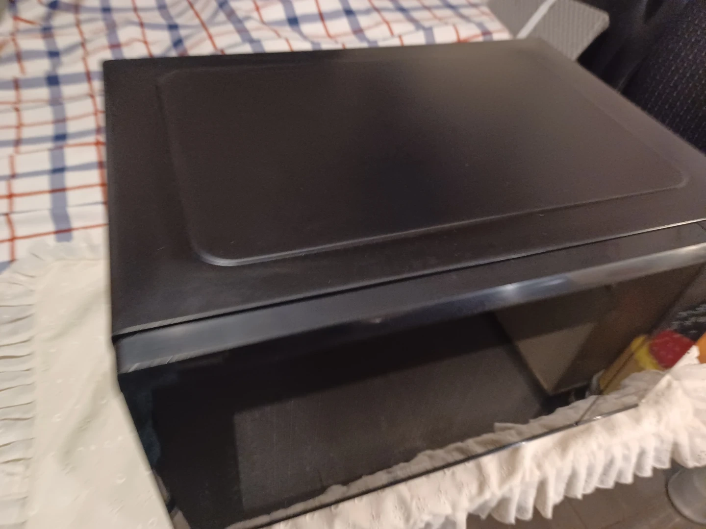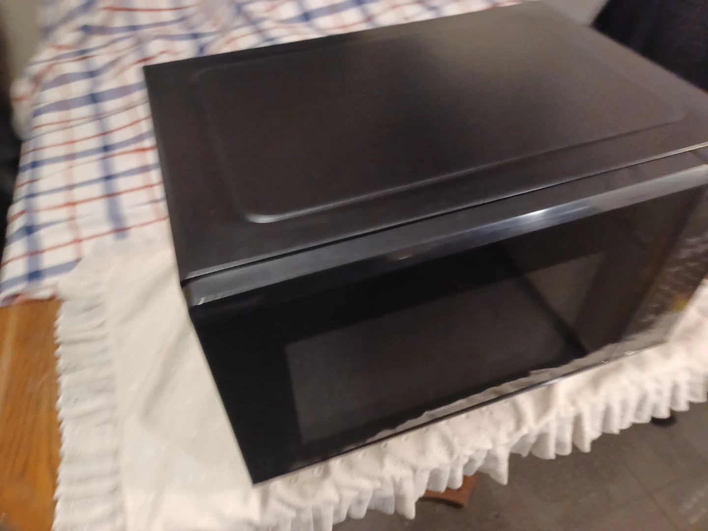 This is a black Panasonic microwave. It features 11000W high power with various auto cook functions. Great for quick meals and reheating leftovers! Very clean. Silent sound.
