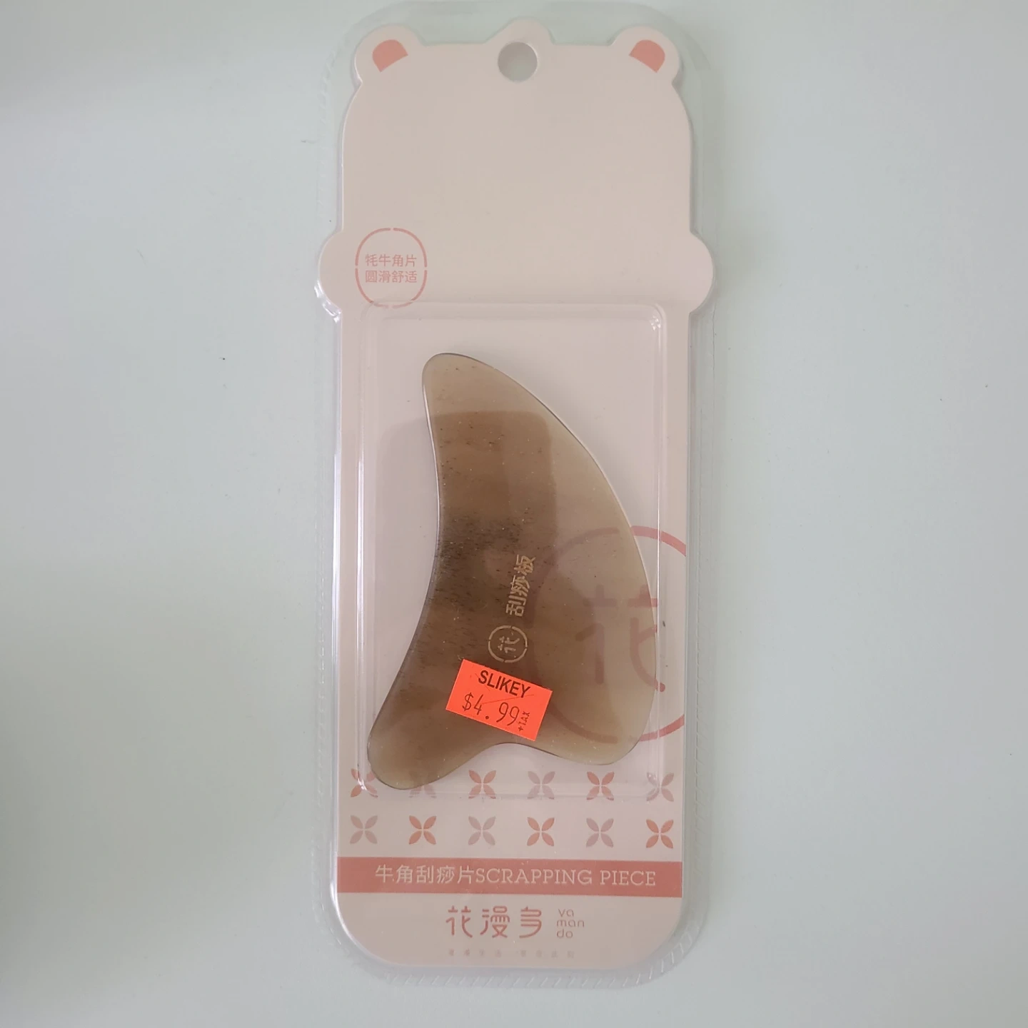 This is a Yamando Gua Sha scraping piece, made from cow horn. It's designed for a comfortable grip and smooth application. Perfect for facial massage and skincare routines!