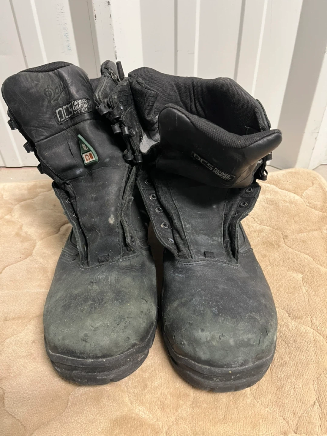Selling a pair of Danner Lookout EMS/CSA ST 28 PT black work boots. They feature Danner's Comfort System (DCS) and are size 11 US, 45 EUR, and 10.5 UK. These boots are durable and ready for work!