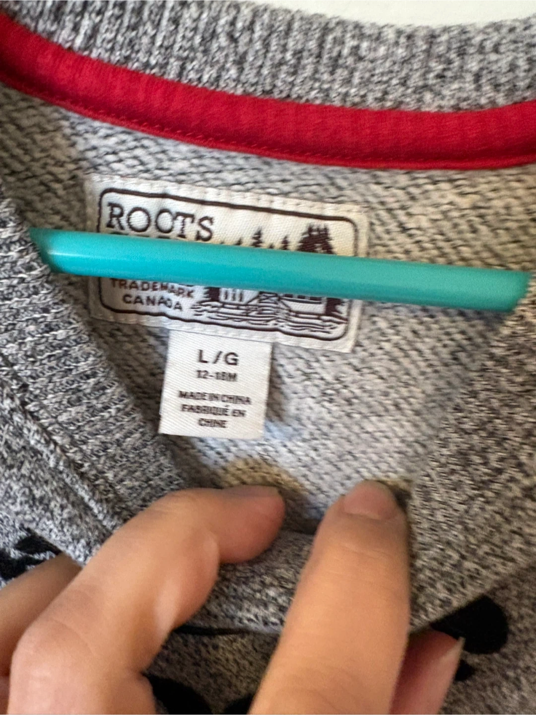 Roots dress with red sleeves and grey body. It's size L/G, suitable for 12-18 months. Polo frock 2T fits small.