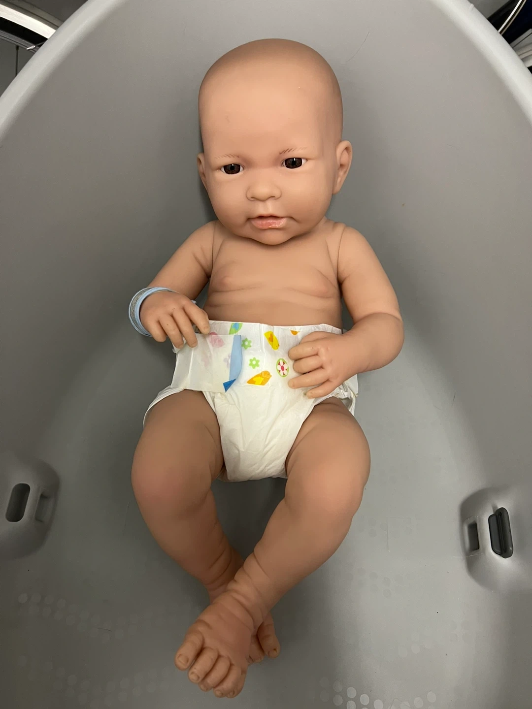 La Newborn baby doll designed by Berenguer. It's a realistic 17-inch baby doll wearing a diaper and wristband. Perfect for imaginative play and learning about baby care! Everything that you see in this pictures for $120