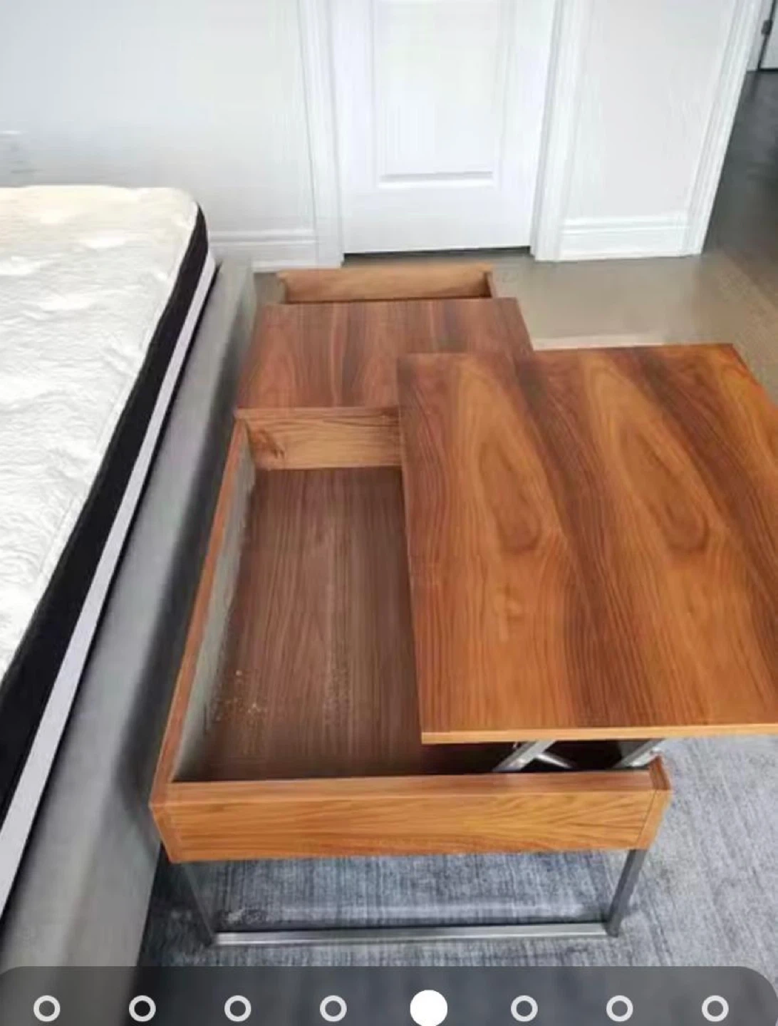 This lift-top coffee table features a warm wood finish and a convenient lift mechanism. It offers ample storage space within its main compartment and a side drawer. This table is great for your living room, providing a surface for work or snacks with hidden storage underneath.