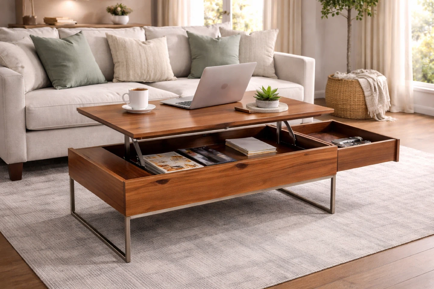 Wooden Lift-Top Coffee Table with Storage