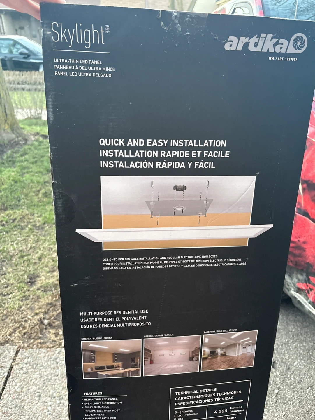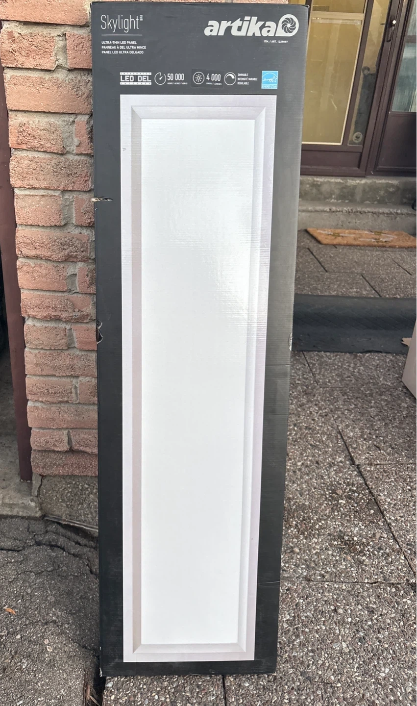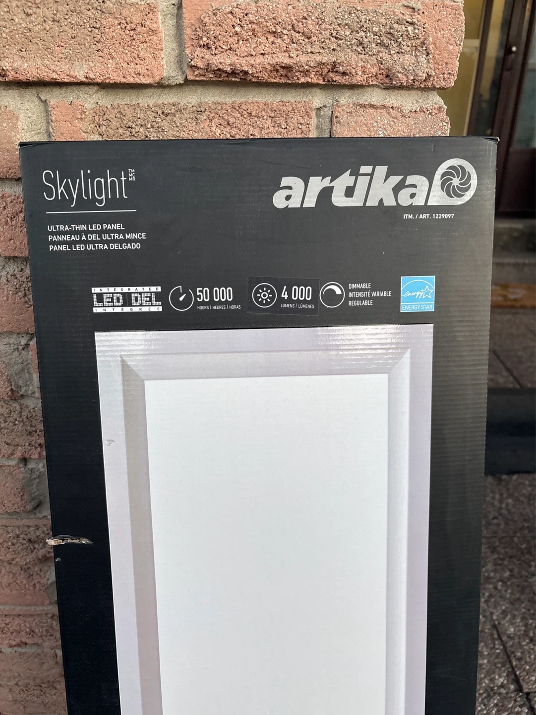 This Artika Skylight is an ultra-thin LED panel light. It's fully dimmable and includes hardware for easy installation. It provides even light distribution.