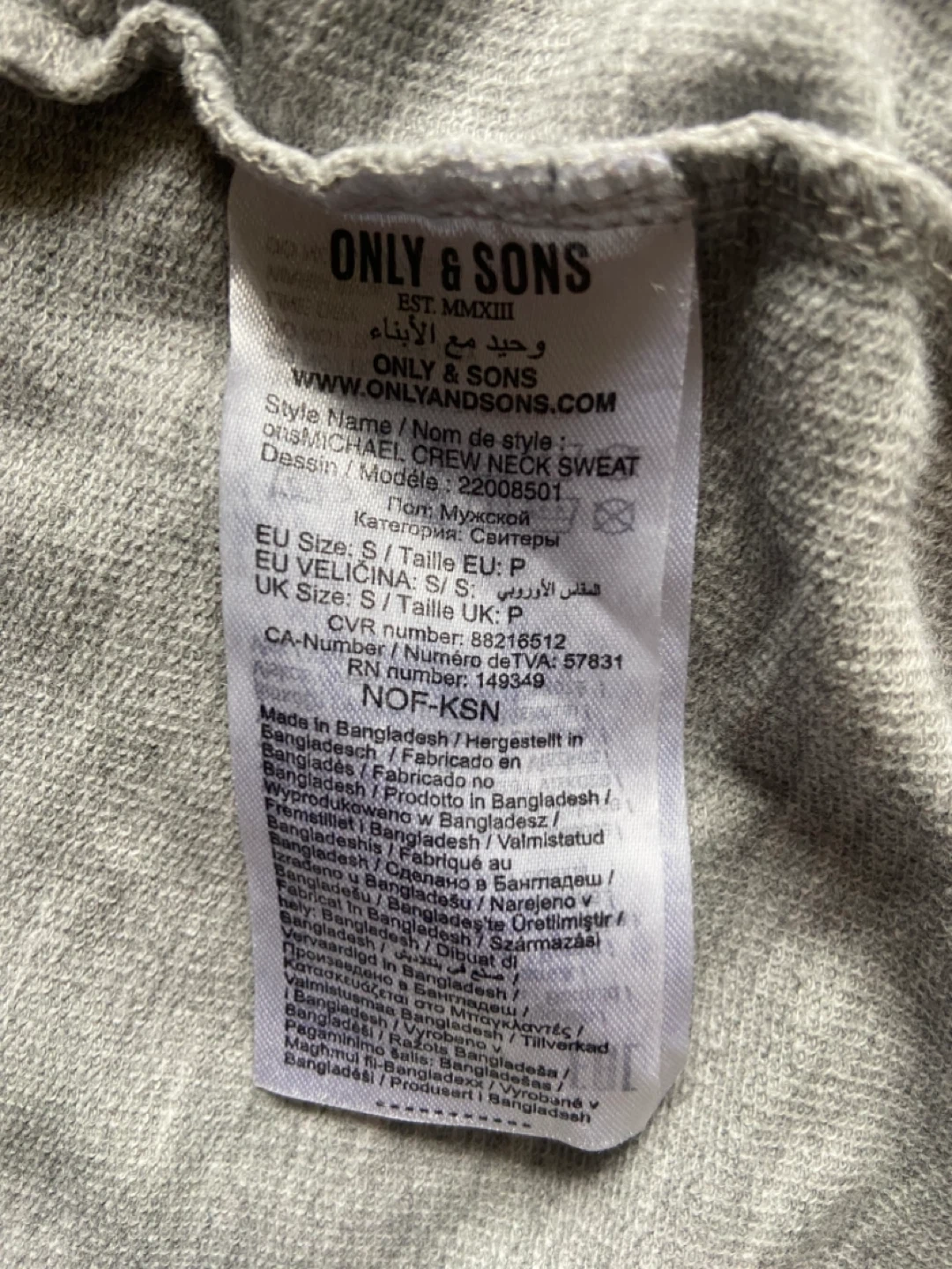 EUC: ONLY & SONS Grey Crewneck Sweatshirt S