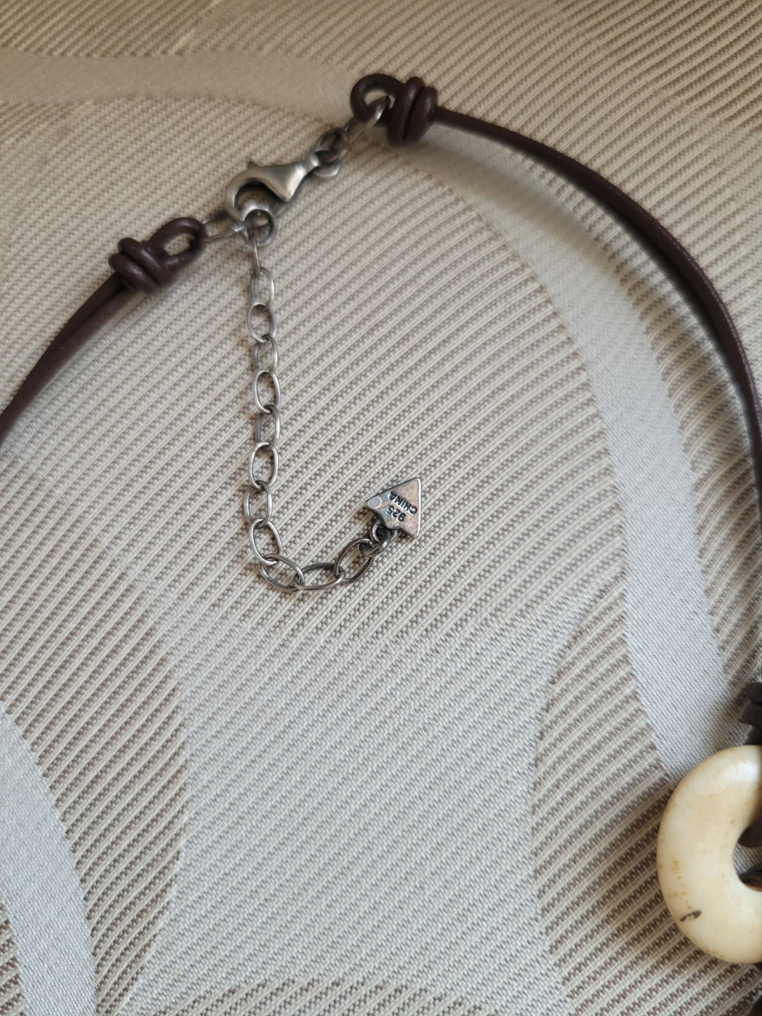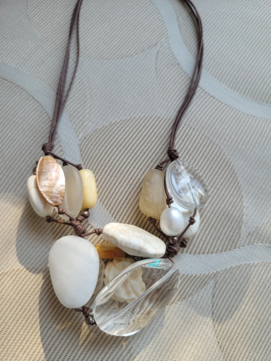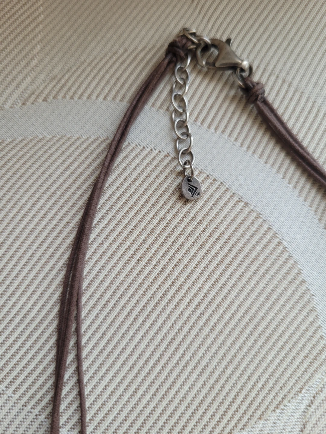 Features unique stones turquoise, tiger's eye, yellow stones, and various wood and shell elements. Includes a lobster clasp and 2' extension chain. All have trademark arrowhead.
