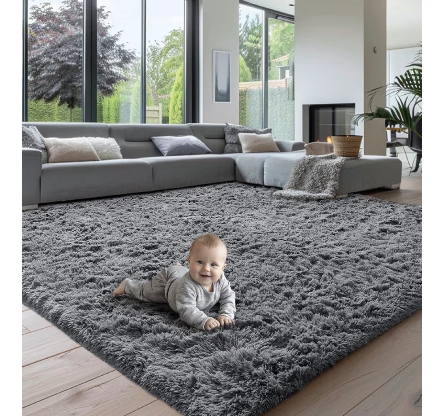 This OPPODREAM rug has an ultra-soft fluffy surface. It features an enhanced non-slip backing to prevent tripping and bunching. This rug is designed to be softened underfoot. OPPODREAM Area Rug for Living Room, Ultra Soft Nursery Rugs for Bedrooms, 4x5.9 Fluffy Kids Carpet with 0.6" Thick Non-Slip Backing, Long Pile Shag Carpet, Fuzzy, Shaggy, Solid Grey. Still in a package so brand new