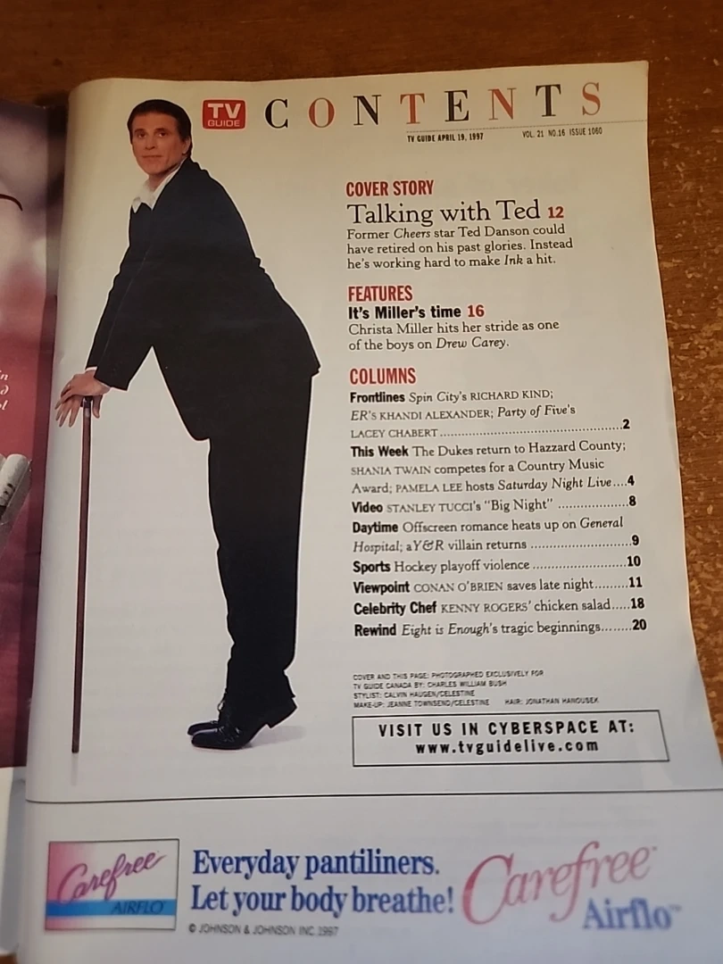 This is the TV GUIDE magazine from April 19-25, 1997. It features a cover story on Ted Danson. The issue includes articles on sports, celebrity chefs, and more.