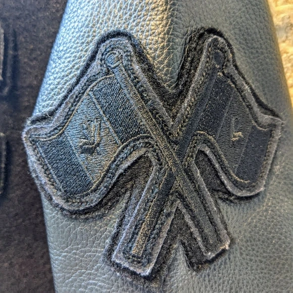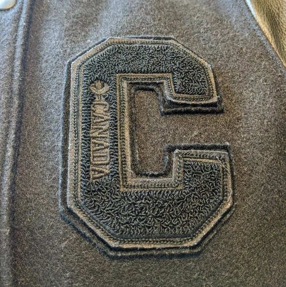 Roots black awards jacket 100% genuine leather/melton.