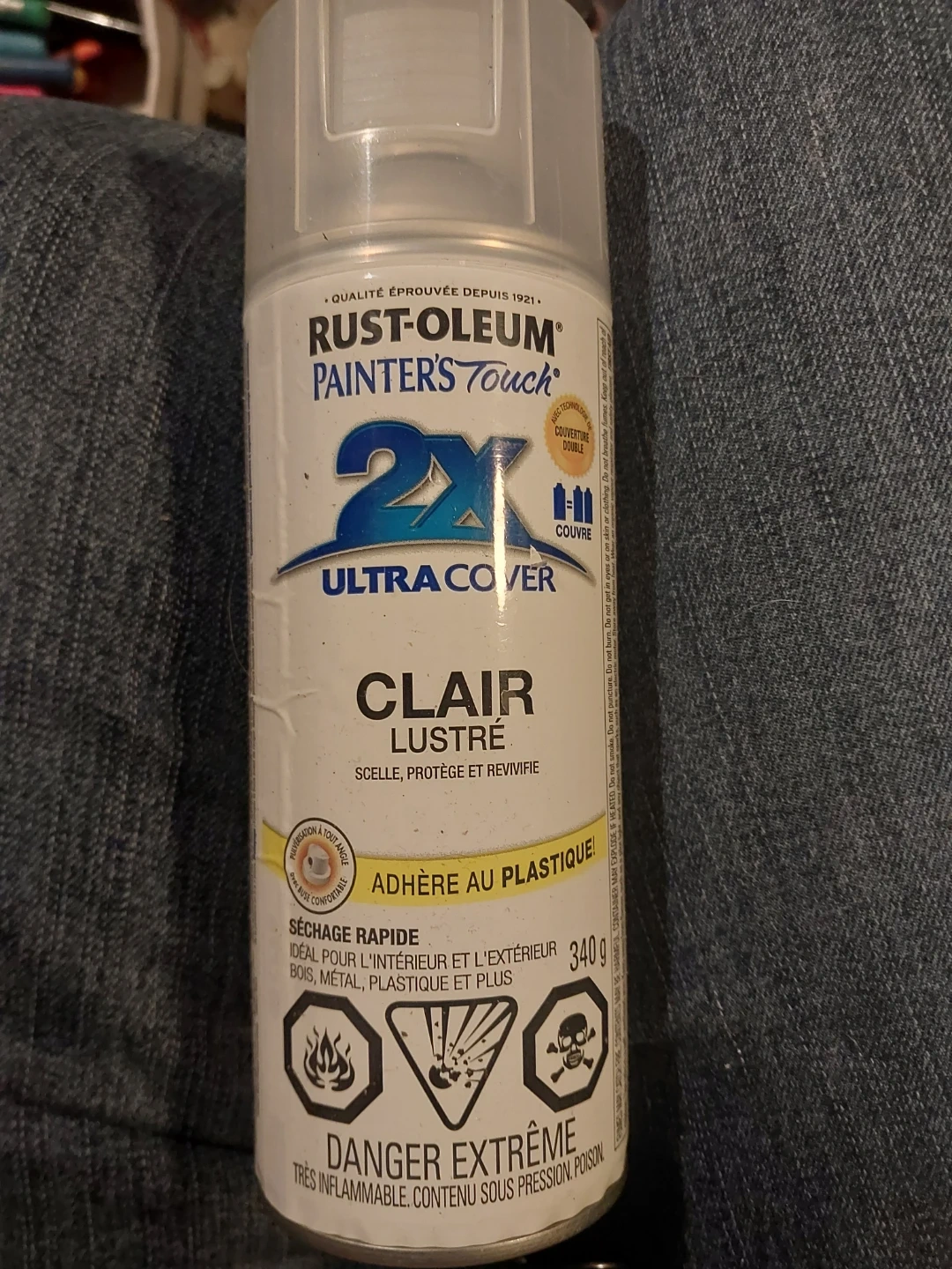 Rust-Oleum Painter's Touch 2X Ultra Cover spray paint in a clear gloss finish. It seals, protects, and revives surfaces. Fast drying and adheres to plastic, ideal for interior and exterior use on wood, metal, plastic, and more.