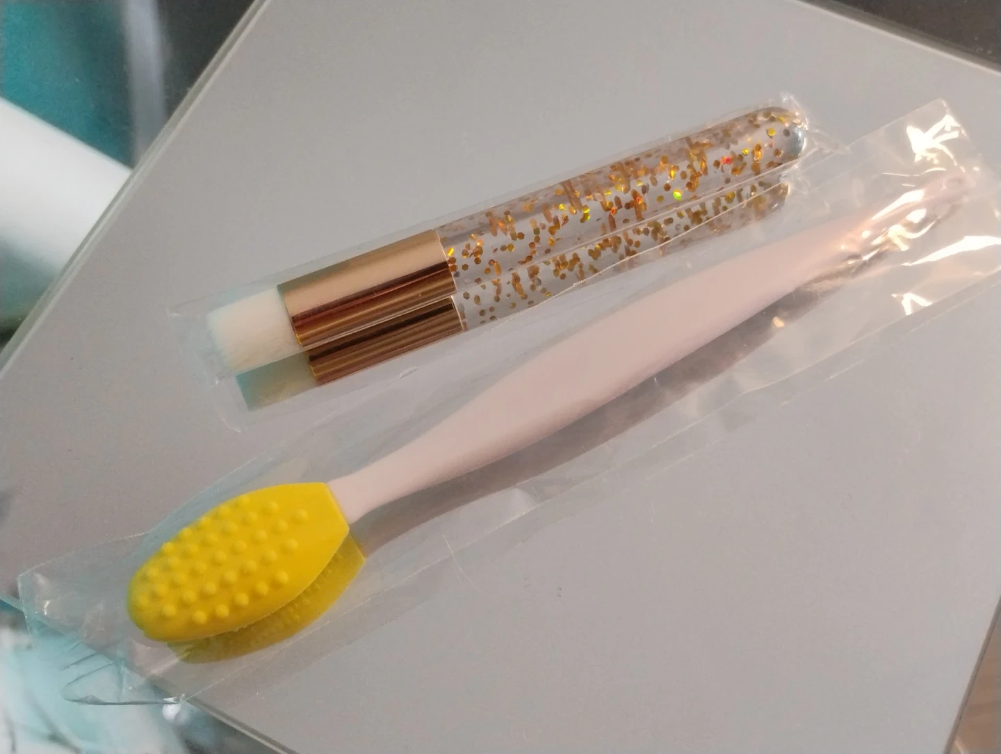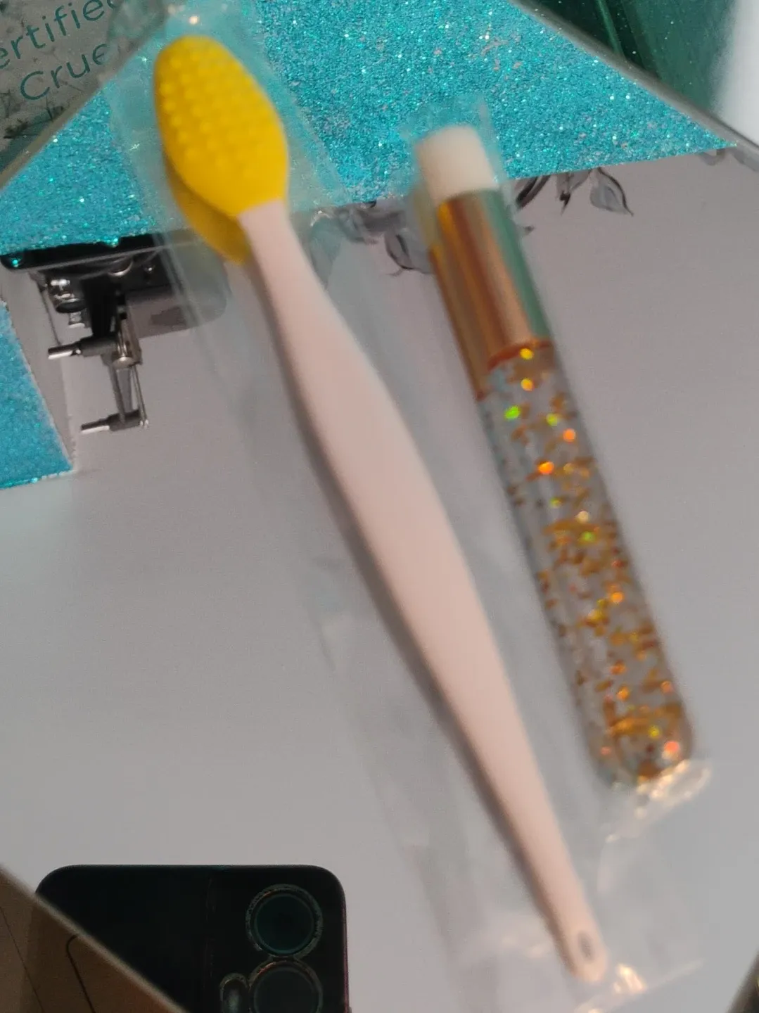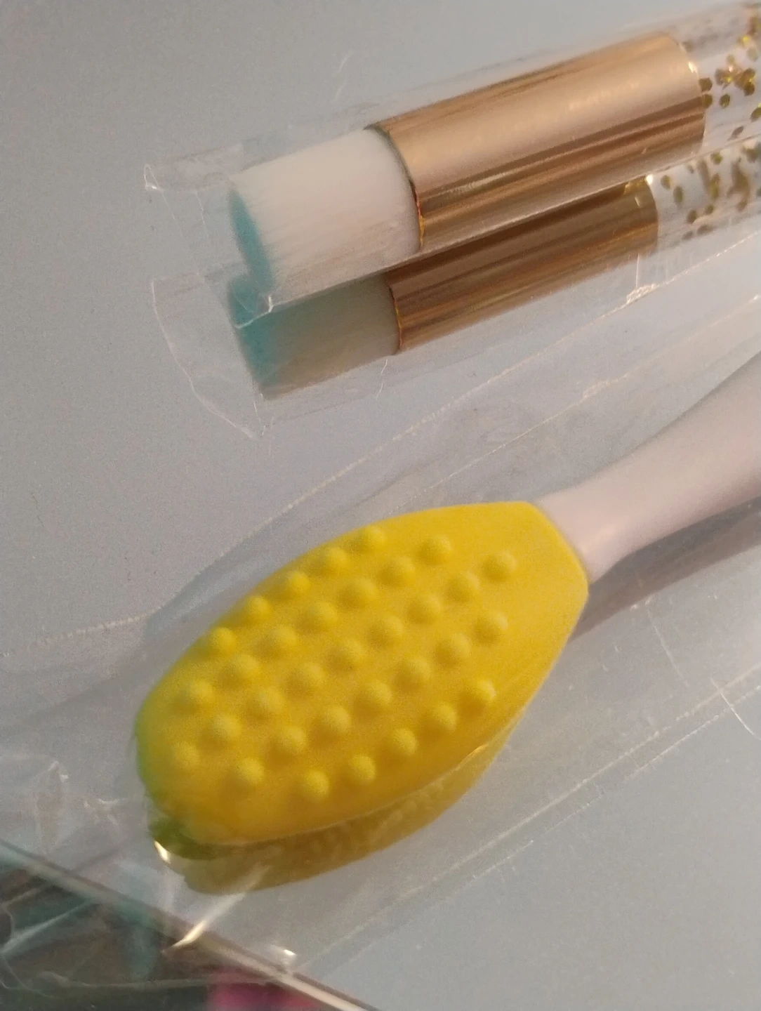 Yellow Silicone Lip Scrub Brush and Glitter Lash Cleansing Brush