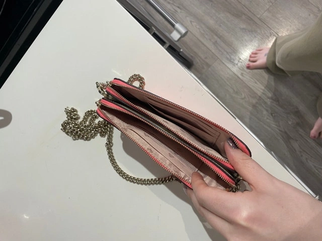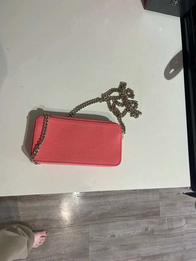 This is a stylish Kate Spade pink purse with a chain strap, perfect for carrying your essentials in a fashionable way. This purse is in used good condition. If the ad is up, it's still available. Cash only please! Pickup only.