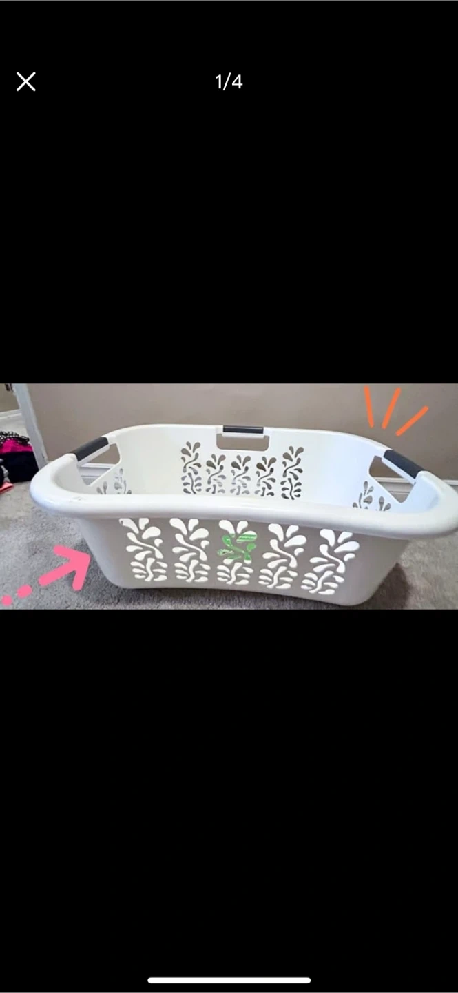 This Sterilite laundry basket holds 44 L. It features hip-hold handles for easy carrying. It's made of plastic and comes in a mindful mint colour.