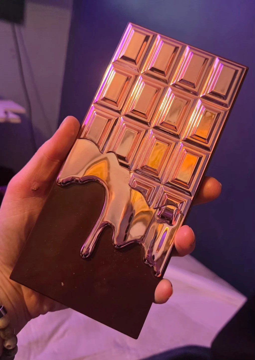 This eyeshadow palette is shaped like a chocolate bar with 16 shimmer and matte shades.