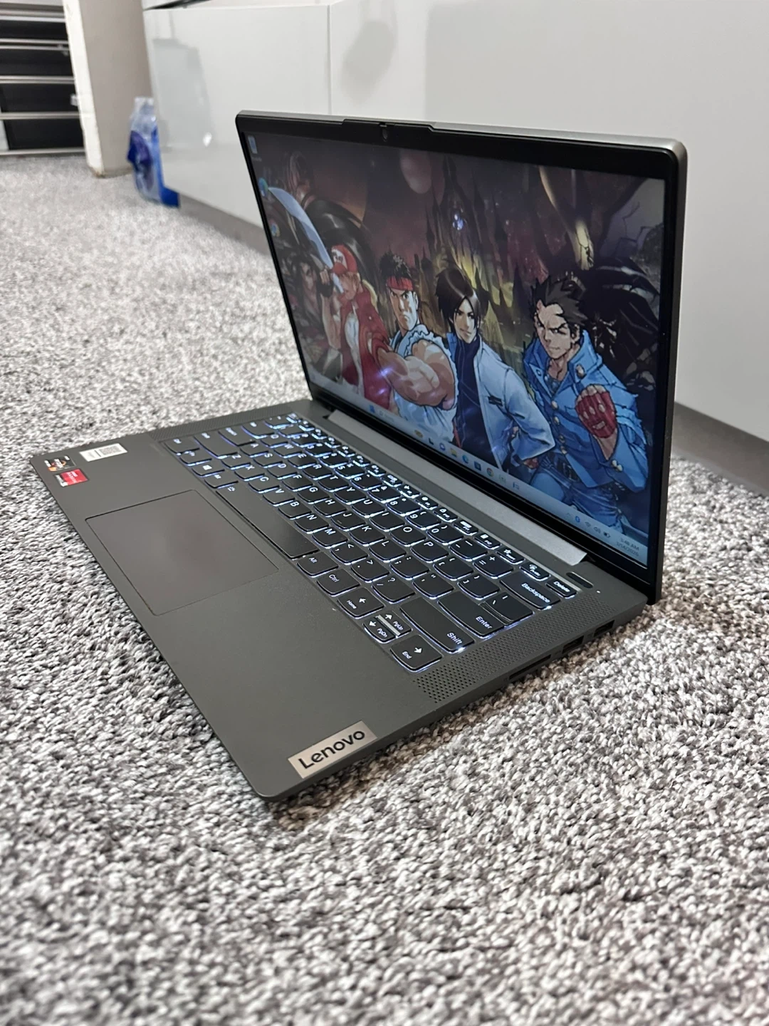 This is a Lenovo laptop with a backlit keyboard. It's sleek and modern, perfect for work or school. Measures 14 inches.