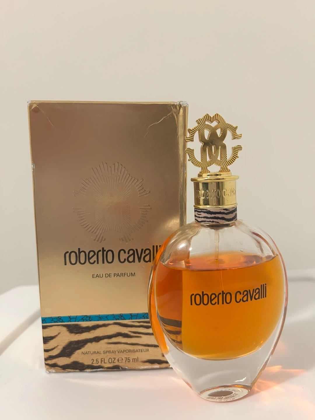 10Selling a bottle of Roberto Cavalli Eau de Parfum. The bottle contains 75ml of fragrance. It comes with its original box!