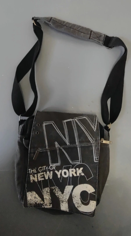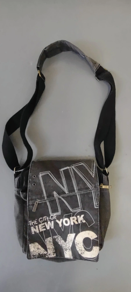 1000+Grey canvas crossbody bag. Features adjustable shoulder strap, zipper closure, and interior pocket. Small and stylish.