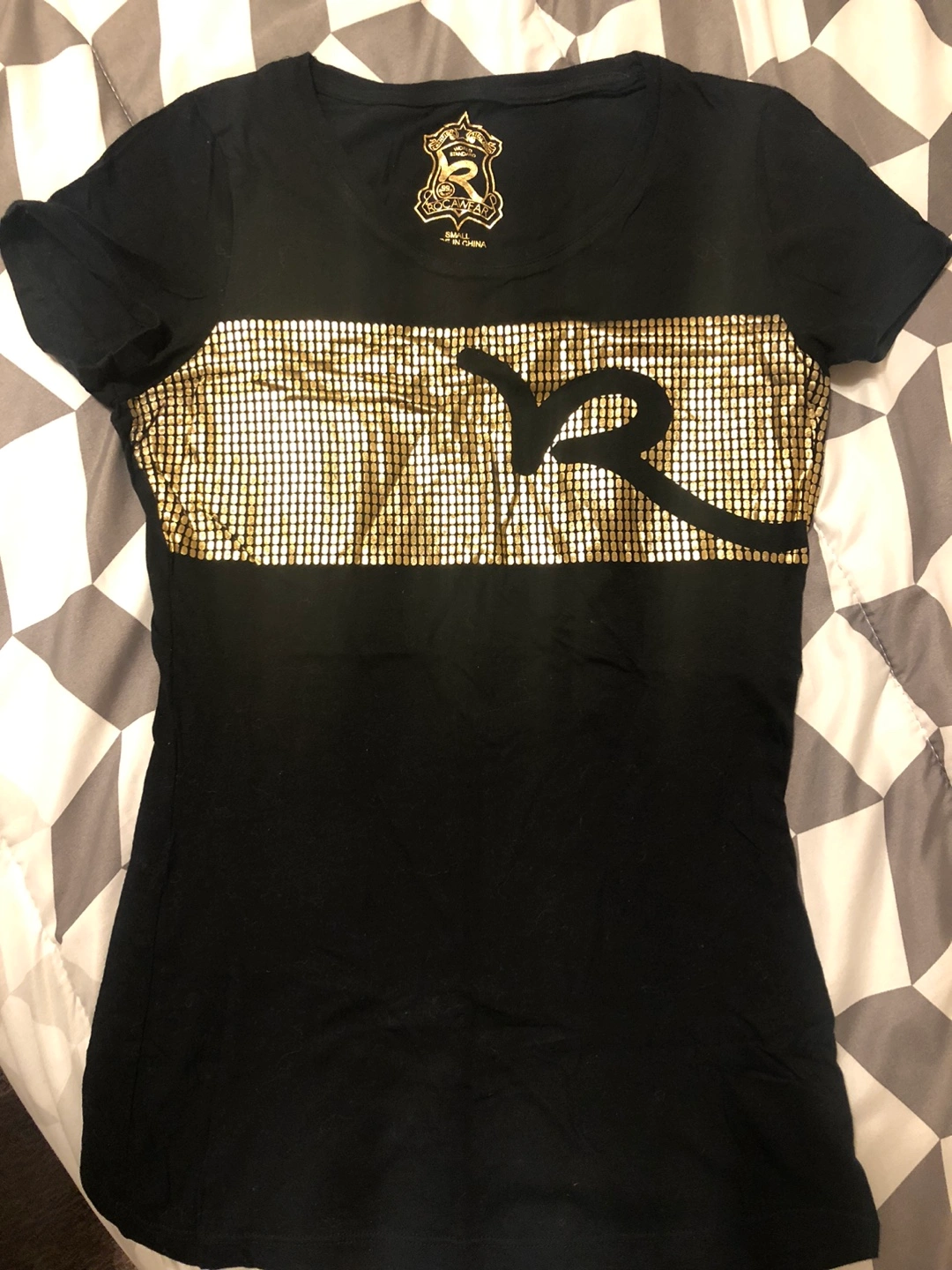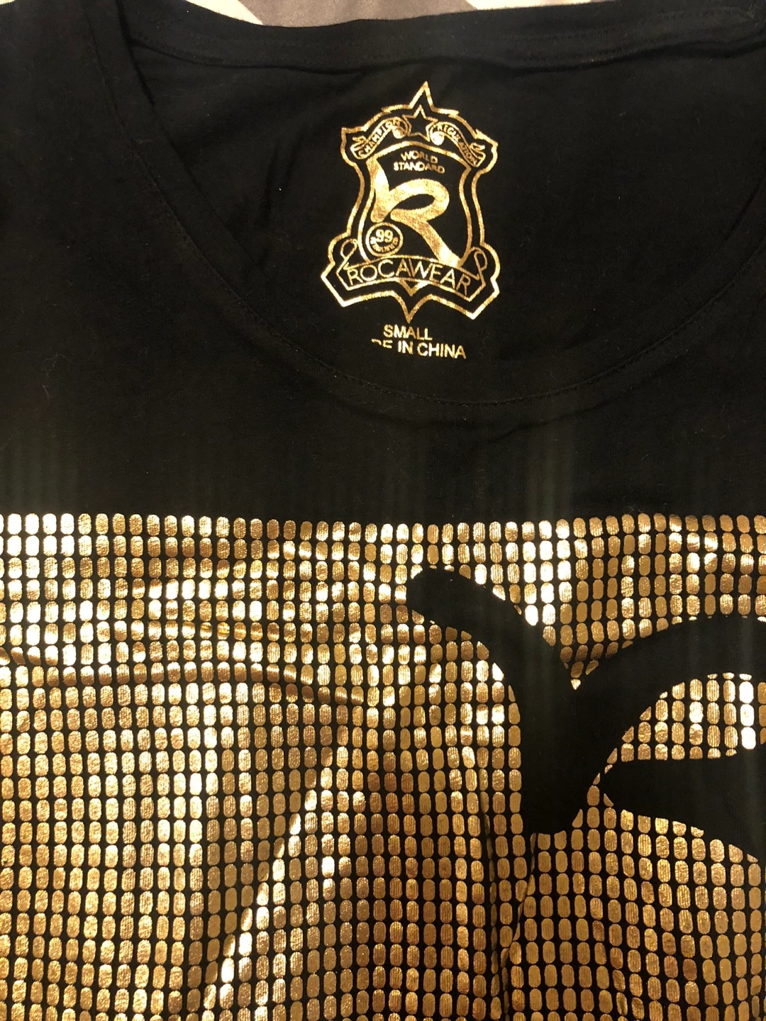 67Black Rocawear t-shirt with gold logo. Size small. Brand new without tags, never worn!